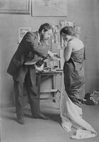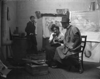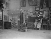 Baldomer Gili Roig amb una model al seu estudi (Barcelona), c. 1910