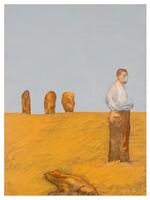 Tot el conjunt contrasta contundentment amb la línia negra horitzontal que talla l’obra en dues meitats, una més geomètrica, a la part superior, i una altra més orgànica, a la part inferior, i que esdevé un clar exemple d’aquesta dualitat que sempre ha configurat l’obra de Rosa Siré, a partir de la definicio de sèries de contraris no dominants i absolutament intercanviables.