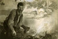 Precisament aquestl dibuix correspon a la il·lustració que va fer pel conte d’Enrique Nicolle "Los tres viajeros" publicat al número 8, de 15 de juny de 1899, a la revista Hispania. En general tots aquest dibuixos mostren la preferencia de Mir pels personatges pobres i miserables dels voltants de Barcelona, fins i tot quan, com en aquest cas, ha de limitar-se a il·lustrar el tema d’un conte. Els rodamons esdevenen, així, un personatge gairebé arquetípic en aquest moment de la trajectòria de Mir, seguint l’estel·la del seu mestre Lluís Graner i, segurament, per la poderosa influència de Velàzquez a qui estudià en els seus viatges a Madrid.