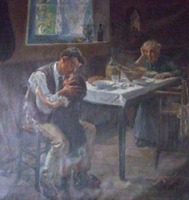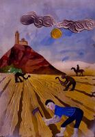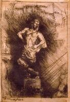 Aquest gravat correspon a una estampació original del mateix Rembrandt, fet per il·lustrar el llibre "La piedra gloriosa de Nabucodonosor" (1655), juntament amb altres tres gravats. L’estàtua, amb peus d’argila i ferro, que Nabuconodosor va veure en el seu somni va ser esmicolada per una pedra “que no va ser tocada per cap mà” (Dn 2, 31-35). Aquesta pedra, la “pedra gloriosa” del títol de Manasseh (“Piedra gloriosa o de la estatua de Nebuchadnesar”, tractat místic sobre l’arribada del Messíes), va omplir després tota la terra. En aquest estat, les cames apareixen trencades per dos llocs (els turmells i els genolls), situació que després, en estats posteriors, modificaria, amb la incorporació, a sota i a la dreta, d'un globus terraqui que simbolitza la pedra.