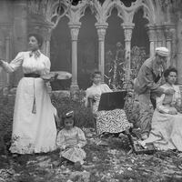 Baldomer Gili Roig pintant en un claustre (Florència), 1900