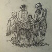1.Grup d'homes; 2.Pageses Objecte físic