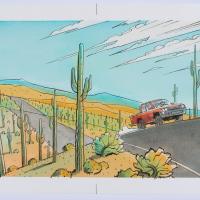 Il·lustració per a "La saga de Chaves" (Chaves amb la seva furgoneta pel desert) Objecte físic