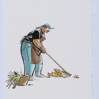 Il·lustració per a "La saga de Chaves" (Chaves recollint fulles) Objecte físic