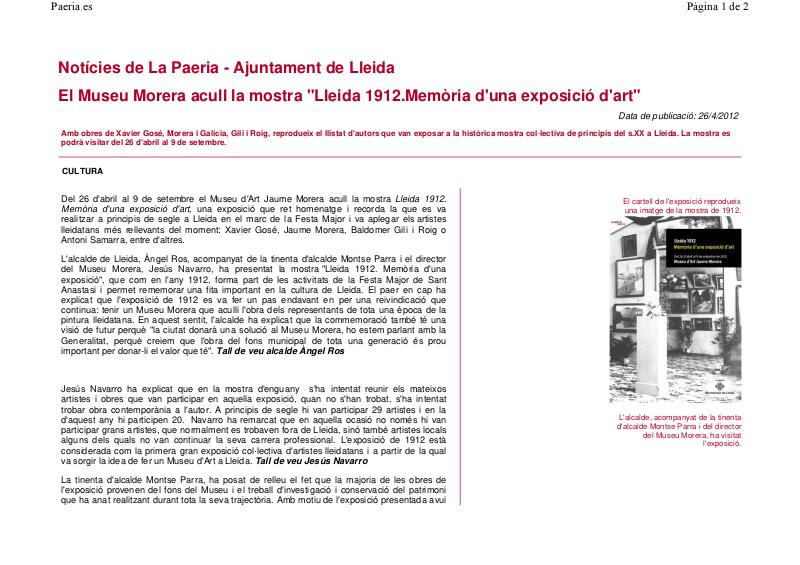 - El Museu Morera acull la mostra "Lleida 1912.Memòria d'una exposició d'art"