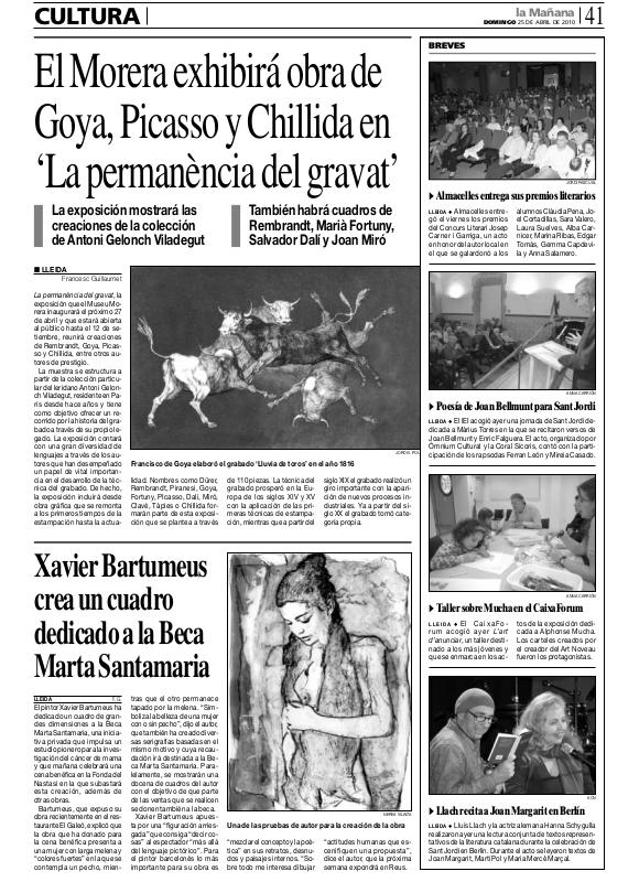 - el Morera exhibirá obra de Goya, Picasso y Chillida en "La permanència del gravat"