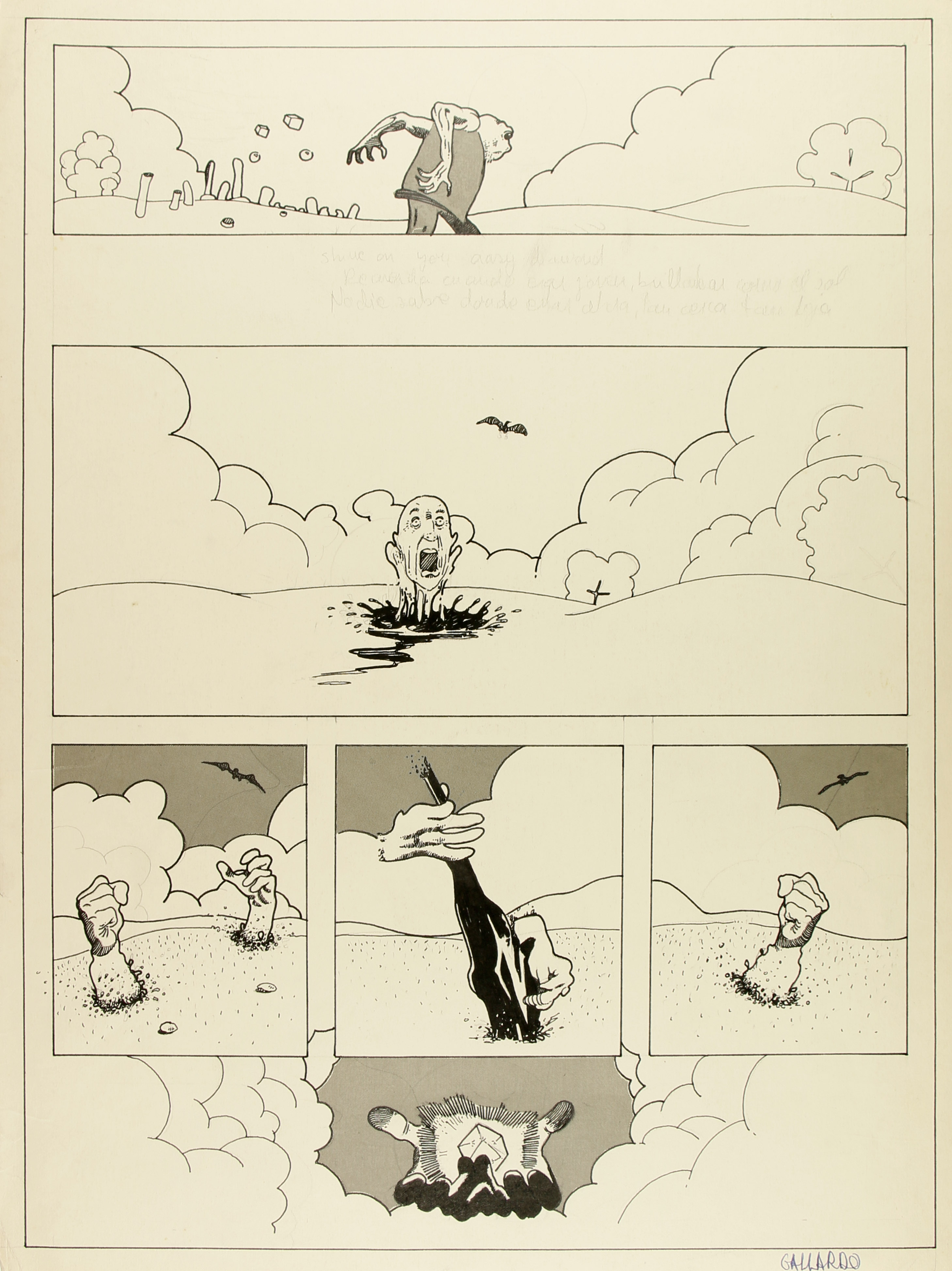 Còmic inèdit "circa 1975", segons inscripció dors, on s'inclou el títol de la cançó de Pink Floyd en llapis i una certa traducció al castellà de la lletra, acompanyant unes imatges sense cap argument lineal on un monstre surt d'una taca negra envoltat d'un voltor i una mà ofereix un diamant.