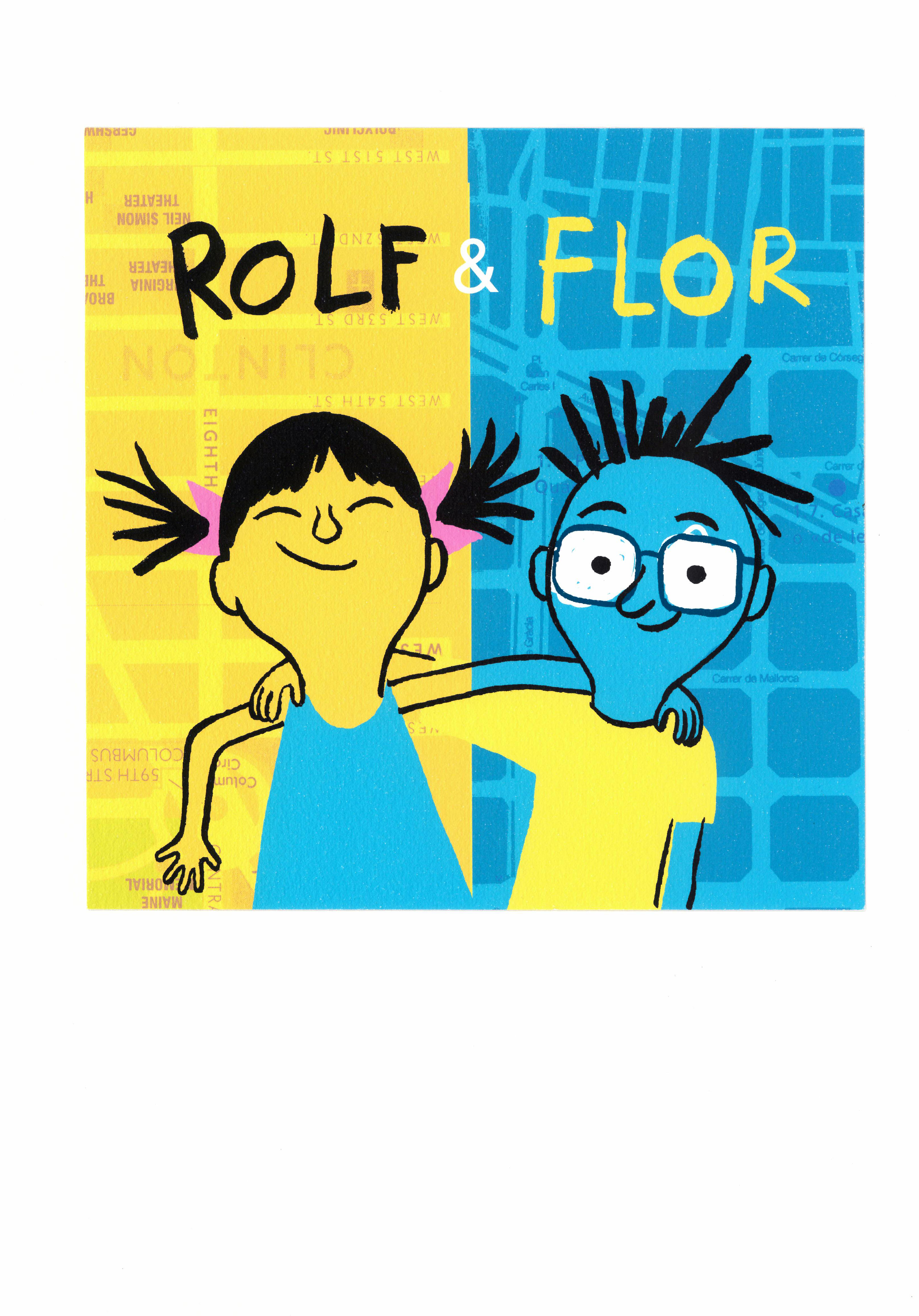 - Imatge de Rolf & Flor, personatges del llibre de mateix títol datat el 2012, tot i que la serigrafia no té datació. Al dors hi ha un segell d'apartedicions.com