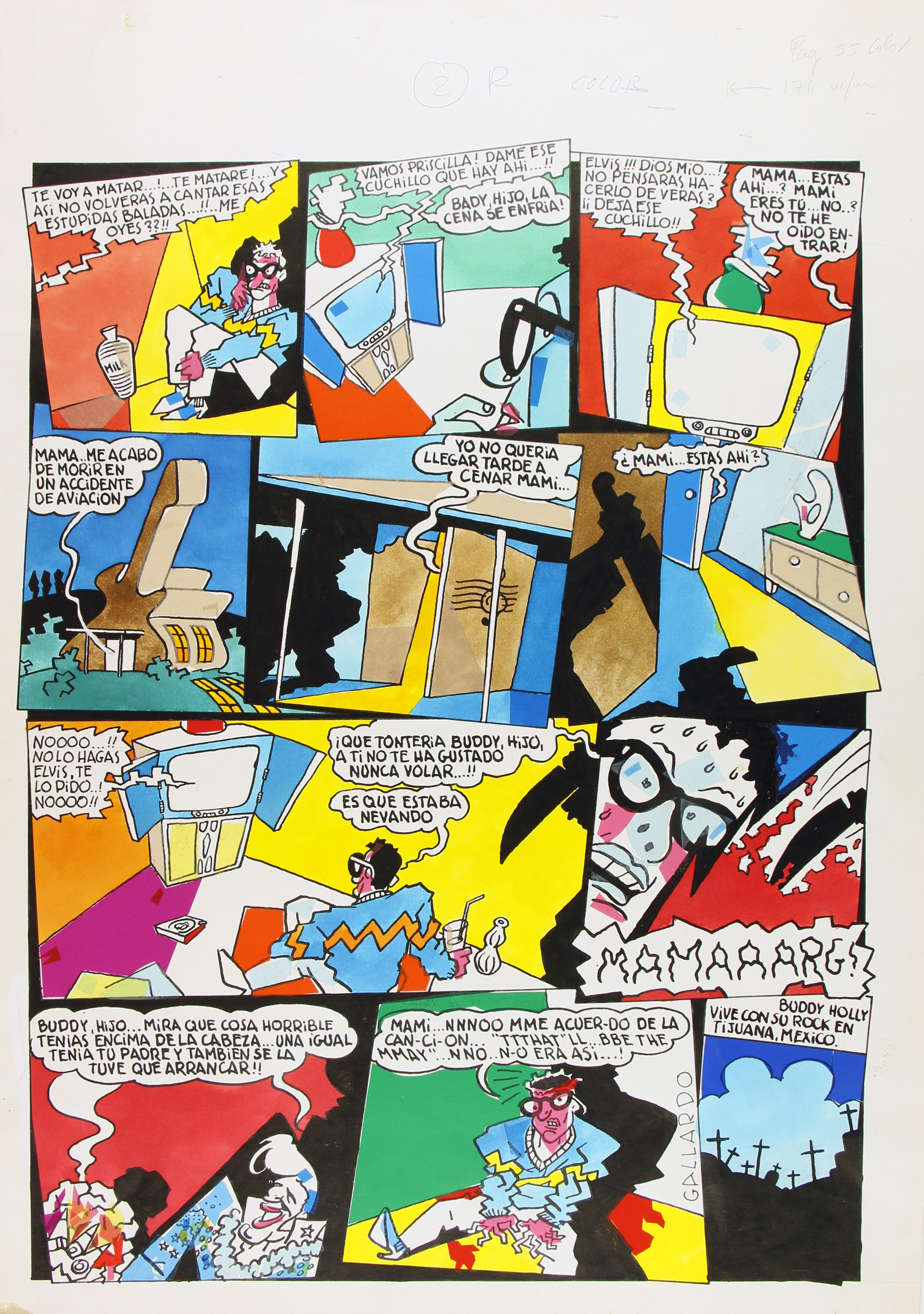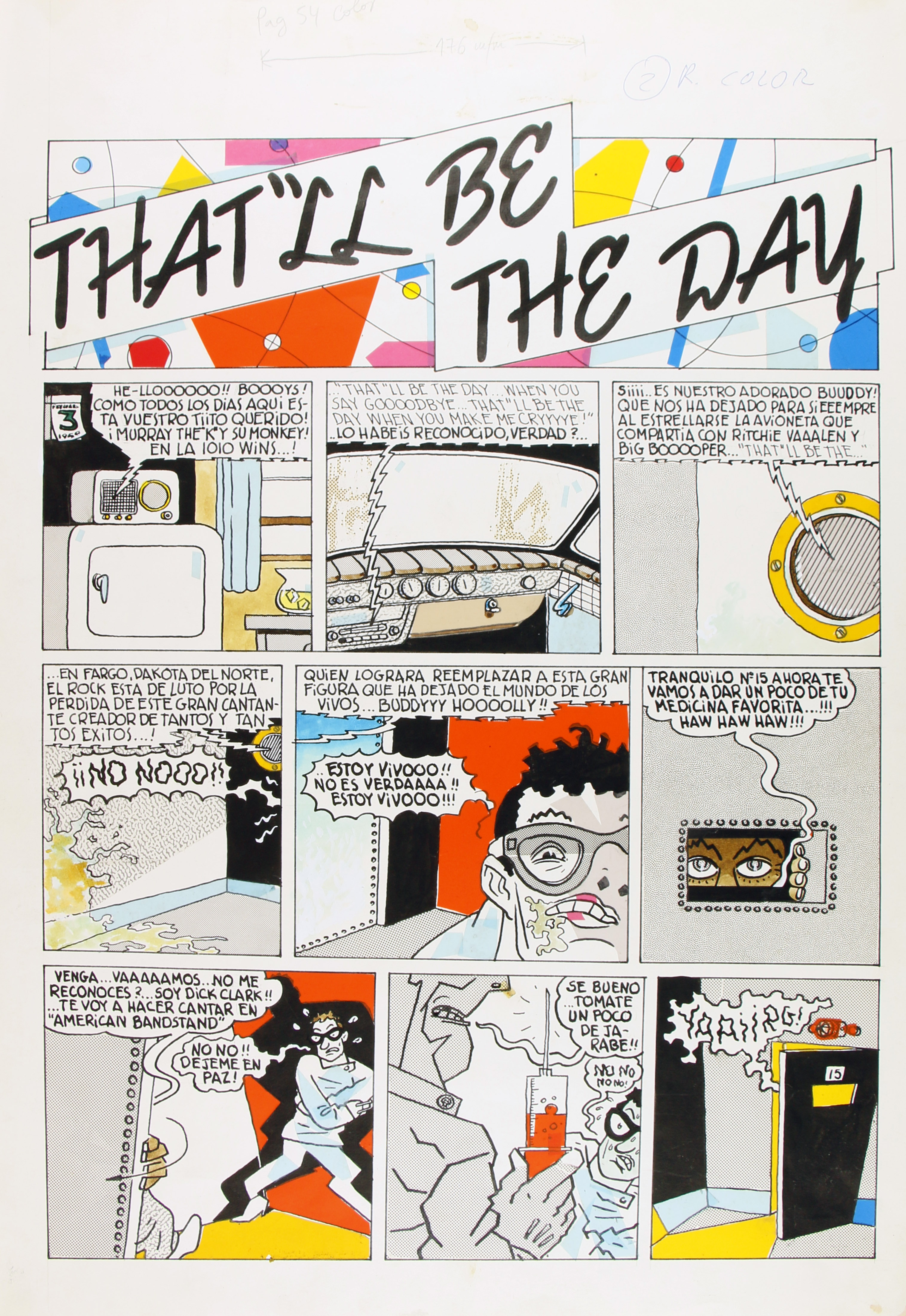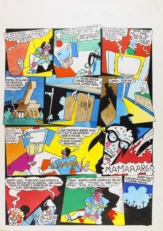 Còmic complet sense data ni publicació associada exacta (possiblement Vibraciones, segons inscripció al dors per l'autor), on es recrea la mort de Buddy Holly en avió quan en realitat està segrestat en un manicomi o tot és una ficció des del televisor de casa seva.