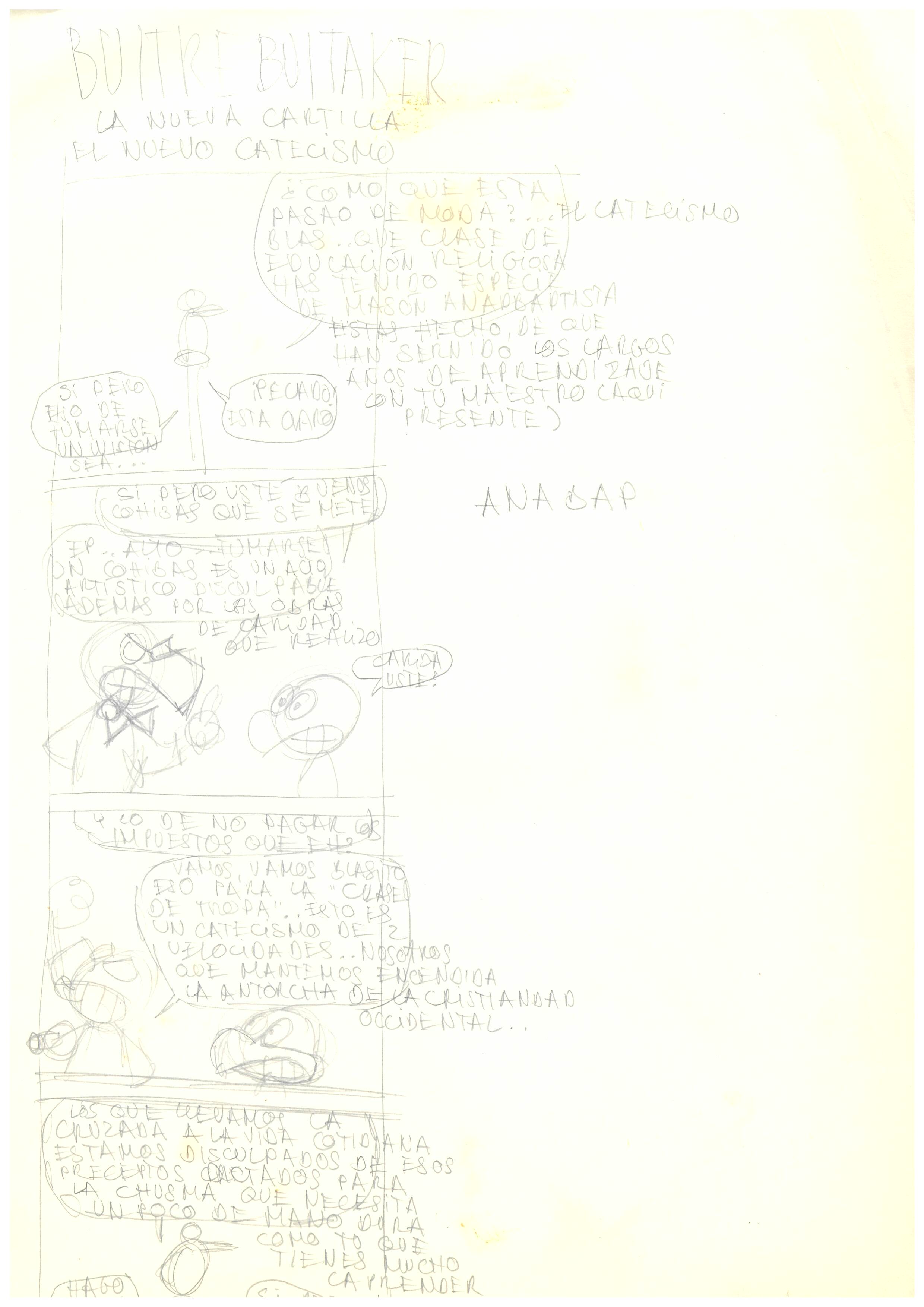 - Tira de còmic de Buitre Buitaker, on Buitaker alliçona Blasito sobre el catecisme i la conservació de la cristiandat.
