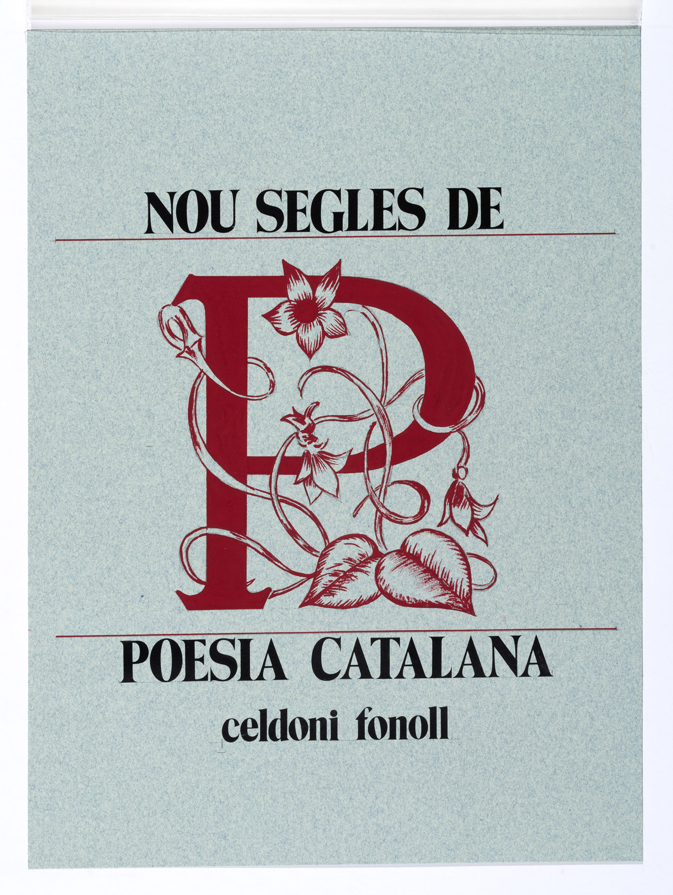Maqueta original de la prova de disseny de la portada del llibre "Nou segles de Poesia Catalana"