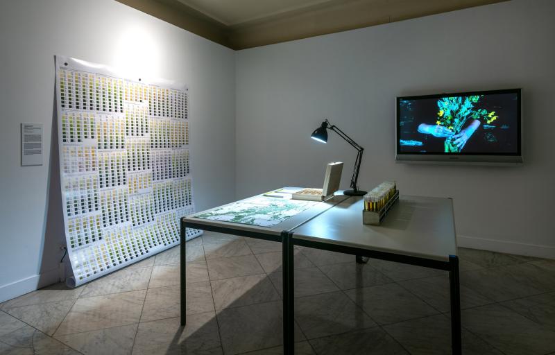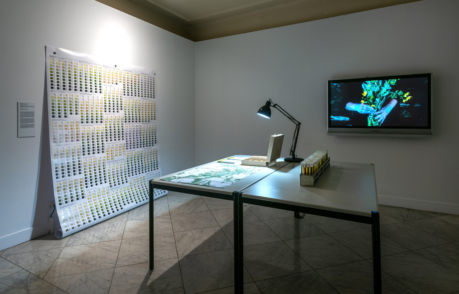 tubs d’assaig, cromatografies de plantes ruderals, taules de color Ruderal RGB, caixa de llavors i videoassaig de 22 minuts 14 segons.