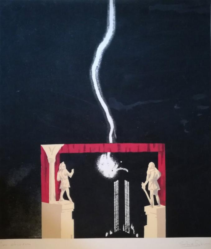 La vinculació de Sílvia Guvern amb Lleida ve remarcada per la seva relació amb Àngel Jové i Benet Rossell i per la seva inclusió en la programació expositiva de la Petit Galerie de l’Aliança Francesa a Lleida, on va presentar la mostra “Visions quotidianes”, del 9 al 16 de novembre de 1976, darrera exposició d’aquest espai expositiu. Aquesta serigrafia s'exposà en aquesta mostra, en la qual es tractaven temes amb elements de quotidianitat però trets del context i posats en un medi aliè
