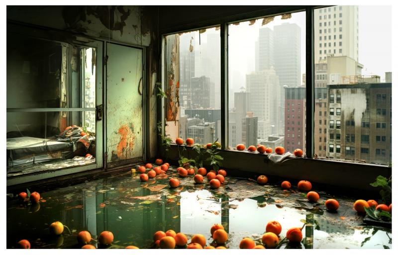 «Taronges, 1827-2023», és un cant d’esperança al futur de la fotografia. Un viatge des d’un simbol de l’origen de la fotografia, la fotografia més antiga conservada: «Vista des de la finestra de Le Gras» de Niépce l’any 1827. Les seves teulades són ara edificis gegants, tot i que gairebé en ruïna. La fotografia ha crescut com mai, però és a prop del col·lapse. Les taronges, però, simbolitzen la confiança amb el futur, amb un nou renaixement. Al llarg de la història de l’art, les taronges han simbolitzat benestar i prosperitat. S’han utilitzat com a símbol de futur, de bona nova, d’esperança. Actualment, la fotografia s’obre a un futur incert, inevitable, però molt més que fascinant per qualsevol que cregui en la fotografia. Toca reaprendre-ho tot. Prescindir de la realitat i de la càmera és un atzucac, però també una oportunitat que no hem de menysprear.