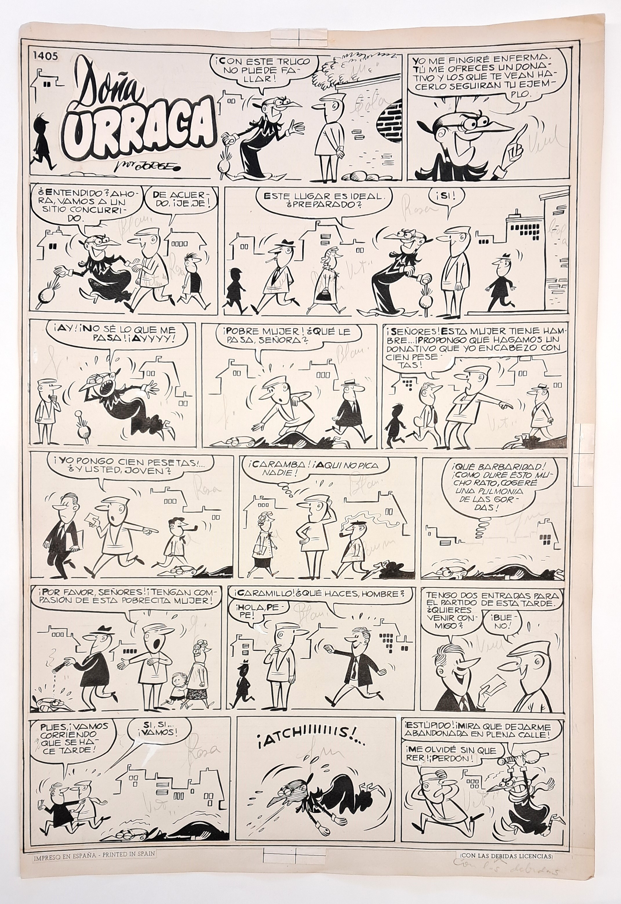 Després del TBO, una altra de les publicacions que millor representa aquell còmic de postguerra que, poc a poc, s’anà obrint camí dins la industria fou la revista Pulgarcito. Una publicació setmanal d’historietes publicada per l’editorial El Gato Negro (després Bruguera) des de l’any 1921, i represa el 1987 per Ediciones B, fet que la converteix en la revista de còmic de major duració del mercat estatal darrera de la ja esmentada TBO. Totes dues publicacions són les úniques que varen sobreviure a la Guerra Civil i, com a TBO, Pulgarcito va acollir les primeres històries d’alguns personatges que han marcat una època: “Carpanta”, “Las hermanas Gilda”, “La família Cebolleta”, “Zipi y Zape”, “Mortadelo y Filemón” o “Doña Urraca”, aquesta darrera obra del dibuixant Miquel Bernet, que signava amb el pseudònim de Jorge. Amb ella Bernet comença a desenvolupar un estil més propi i personal per abordar la tasca de donar vida a un personatge tan singular que la pròpia editorial va anunciar prèviament a la seva sortida com tot un esdeveniment, cosa que no es va fer amb gairebé cap altre personatge d'aquell temps. Bernet va publicar la primera història de “Doña Urraca” al número 77 de Pulgarcito, del 10 de desembre de 1948. Aquestes quatre històries són de la seva època de plena maduració, a començaments dels anys 50.