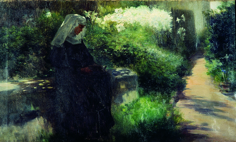 En aquest context i a partir de les mateixes solucions formals es presenta una derivació d’aquesta producció, que darrerament ha estat relacionada amb una certa sensibilitat simbolista. Fugint ja de les grans vistes i representacions de la natura, Morera insereix en aquests racons de jardí figures de monges, novícies i nenes, que, en alguns casos, assoleixen un protagonisme temàtic molt accentuat. El decadentisme que impregna aquestes composicions, hereu de les arrels del romanticisme presents en tota l’obra de Morera, es manifesta més obertament i en una direcció clarament intimista. Tot plegat, el conjunt d’aquesta obra ens parla d’un Morera més alliberat de la rigidesa de les seves composicions paisatgístiques, etapa que es perllongarà fins al final de la seva vida.