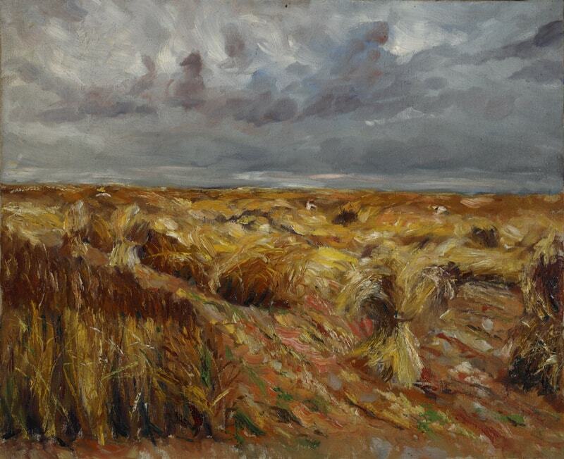 Si, inicialment, el cel i el moviment dels núvols esdevenen els protagonistes destacats de les pintures de Benseny —d’aquí l’aplicació del mot romanticisme quan es defineix l’aspecte tempestuós del conjunt— poc a poc l’artista adopta una paleta cada cop més càlida, amb un predomini evident dels ocres i taronges, i que, en la seva darrera època, alguns autors defineixen com a expressivament lumínica. Com en el cas d’aquesta peça, el cel perd protagonisme respecte la terra, i el moviment dels núvols ha estat substituït per les línies de les garbes de blat o, en altres pintures, pel moviment del vent sobre els sembrats, les roderes o els marges dels camins, arribant, fins i tot, a una certa deformació de la visió general de l'obra. Es tracta, en definitiva, de sotmetre constantment la pintura a l’estat d’ànim de l’artista, a una espiritualitat sempre present, reflex del subjectivisme visceral que emana del pintor.