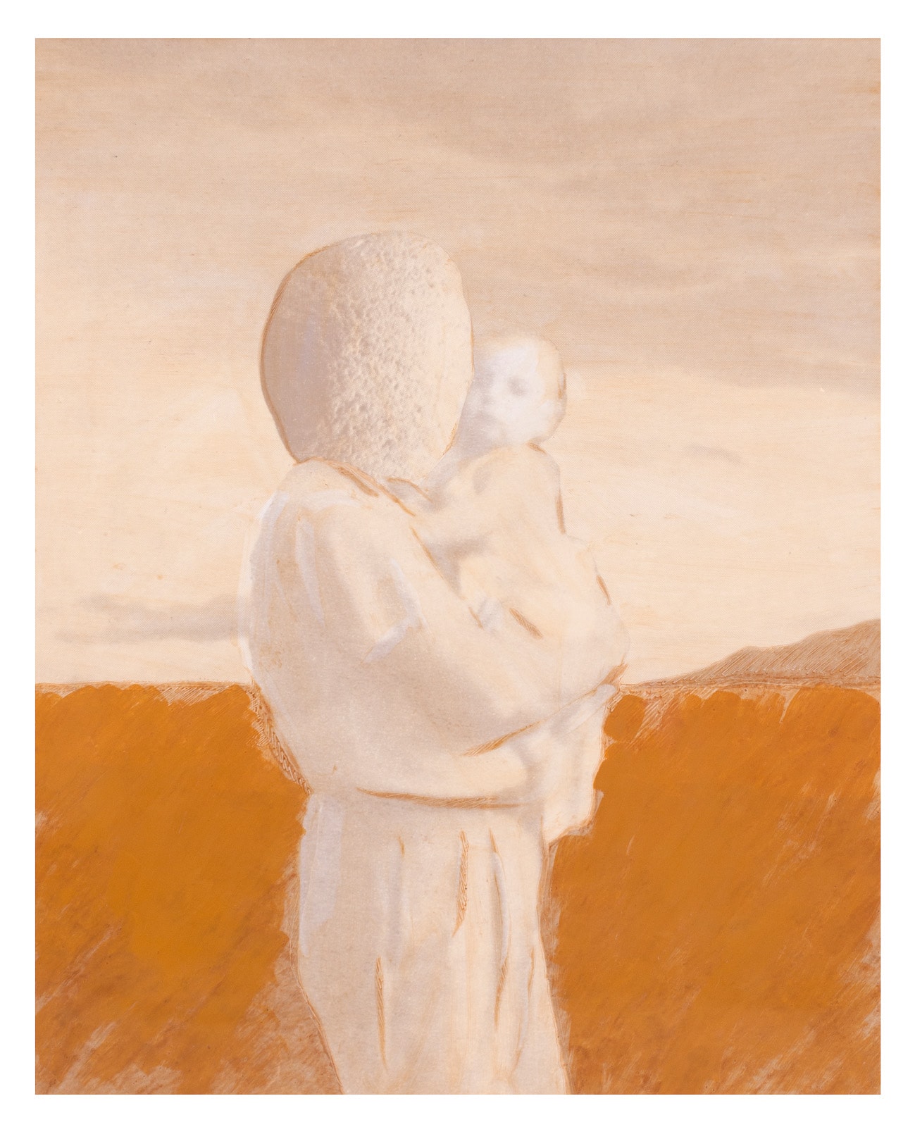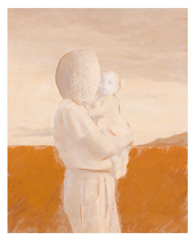 Aquesta obra d’Àngel Jové s’inscriu en una definició de la pintura que continua el procés endegat amb la seva experiència en l’art conceptual i, per tant, no és un treball que reflexioni sobre la citació o la captació de models i d’iconografies post-modernes, sinó tot al contrari, és una pintura que té les seves arrels en l’experimentació a partir del retorn a l’origen de la mateixa representació pictòrica. S’estableix, per aquesta raó, una nova dialèctica entre abstracció i figuració dins un marc plenament metafísic. Aquest diàleg que continuament emergeix de l’obra d’Àngel Jové, pot anar cap a vies de representació del tot diverses. En aquest cas s’enmarca dins una visió molt particular de l’art sacre; una peculiar “maternitat” plenament inserida dins aquest concepte metafísic al qual hem fet referència, on les formes i els objectes se’ns apareixen molt lentament, com a provinents d’una memòria ancestral que sempre té un cert i fascinant regust a mort.