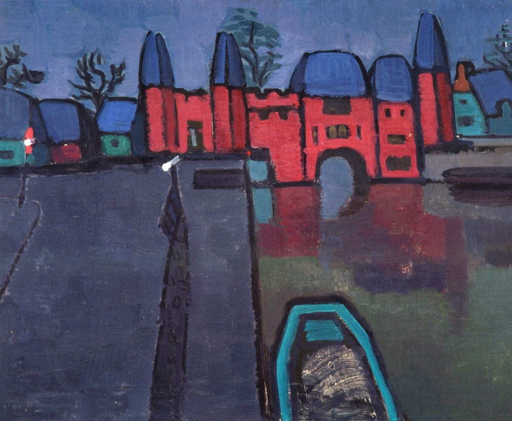 Aquest paisatge d’Amersfoort (Holanda) —fruit d’algun dels viatges que l’artista realitzà als Països Baixos, en ocasions en companyia de Lluís Trepat— podria datar-se abans o després del període informalista de Minguell (1964-1965). Les evidents similituds existents amb obres com ara Plaça de Sant Joan, datada l’any 1955, i el fet que el seu retorn a la figuració impliqui una major intensitat i definició de les superfícies de color i s’accentuï encara més el protagonisme absolut de la línia negra en la composició del que s’aprecia en aquest paisatge urbà, fan que puguem situar aquest Amersfoort (Holanda) en una etapa anterior al Grup Cogul. Alguns elements del quadre, però, preludien molt clarament l’arribada de l’Informalisme, com ara el tractament dels fons de la barca (en primer pla), amb elements que ja semblen agredir el suport, i la representació dels reflexos de les cases sobre les aigües del canal.