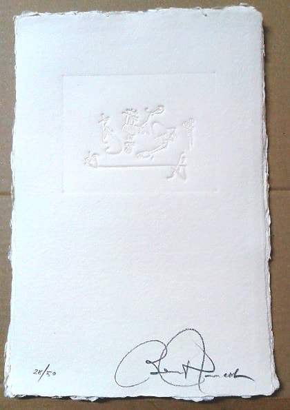 - Benigrafies gravades sense entintar sobre paper fet a mà.