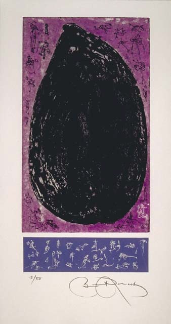 La mandorla és aquella aureola que sovint pren una forma ametllada, on s’inscriu la figura del Crist en Majestat, entre d’altres, com a signe de divinitat. Aquesta dualitat entre cel i terra, entre el misticisme propi de la simbologia religiosa catòlica i l'ametlla com a element propi del camp, del territori, converteix la sèrie de les "Mandorles " de Benet Rossell, representades en gravats, pintures i escultures (com la que domina la Plaça de l'Escorxador a Lleida) en una de les iconografies més característiques de l'artista, l'obra del qual es caracteritza per la voluntat d'unir mons: el mediterranisme i l'orientalisme, el gest i el traç, l'escriptura i el dibuix, l'atzar i el mètode, la concreció i l'abstracció. En definitiva el macromón propi de Benet Rossell i el micromón mitjançant el qual ens en fa partícips.