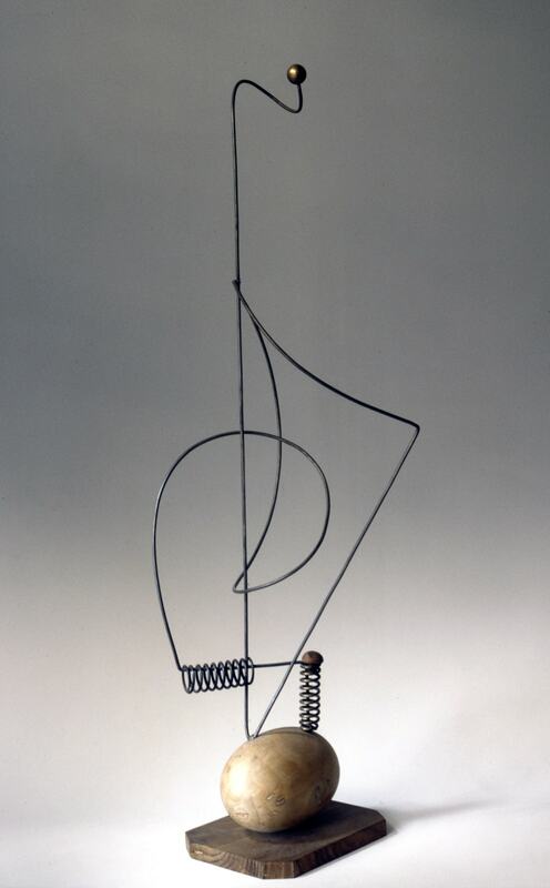 acer, metall i fusta amb vareta de ferro sobre base de fusta