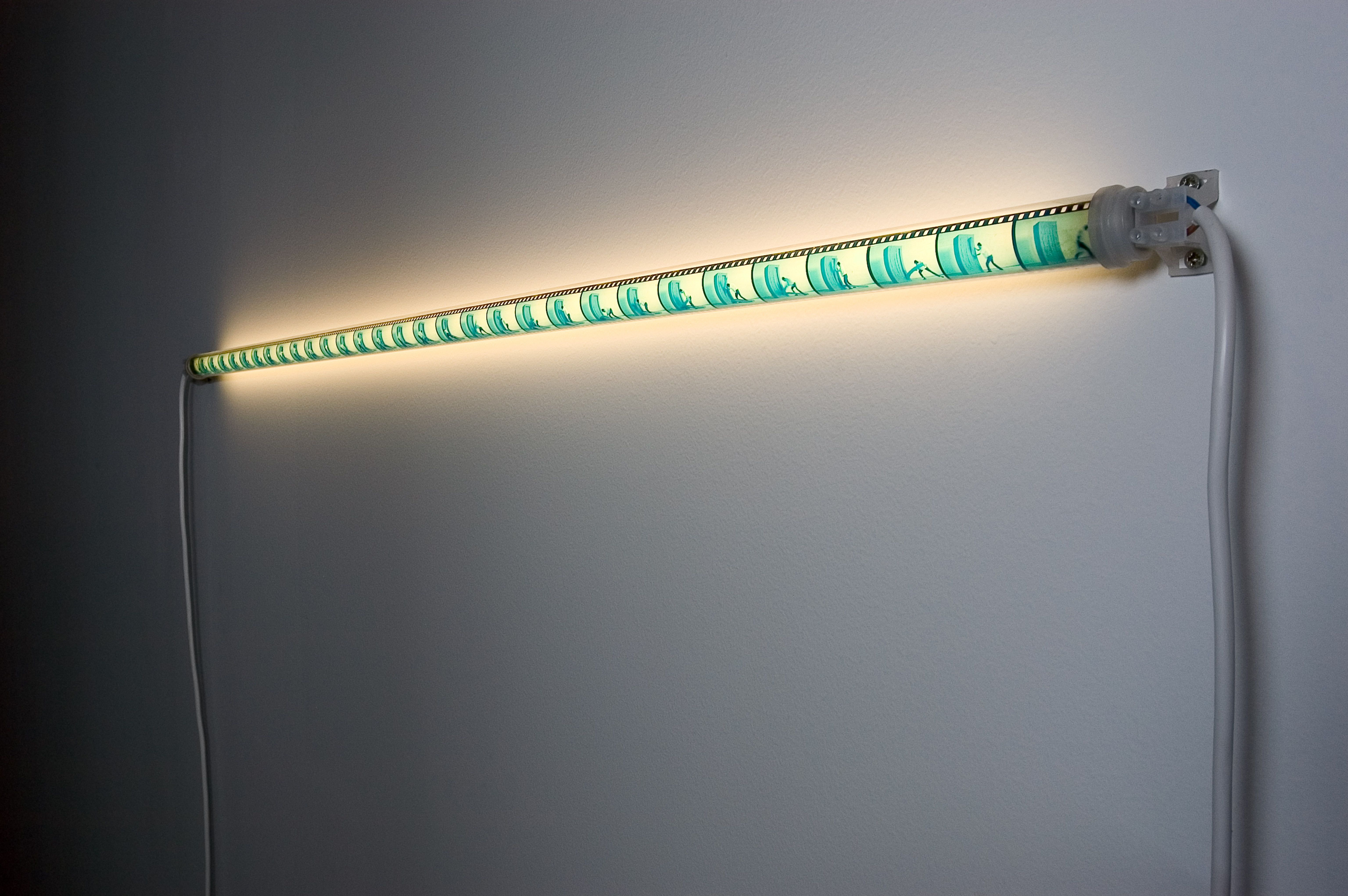 Fluorescent i negatiu fotogràfic. Fragment de pel·licula del desplegament d'una escultura de goma-escuma de l'autor, muntat sobre un fluorescent