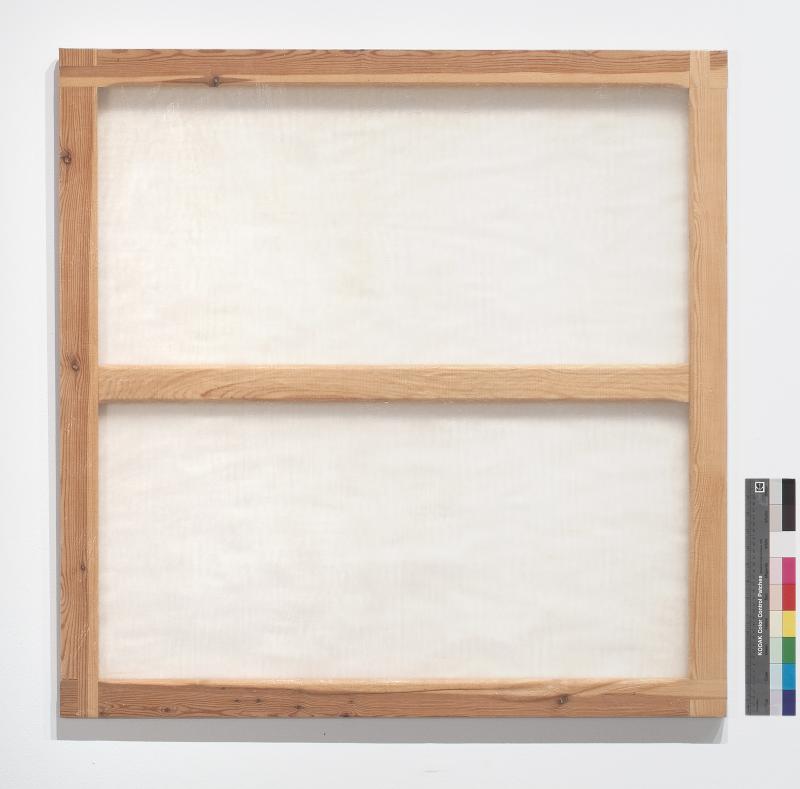 A partir de finals del anys vuitanta Ignasi Aballí emprèn una revisió de la pràctica pictòrica a nivell formal, tècnic i conceptual. Amplia la noció tradicional de pintura a partir de la inclusió de materials gens convencionals i situa la pintura en un estat de suspensió, al límit de la seva desaparició, en un etern qüestionament de la seva pròpia raó de ser. Amb Pell la desmaterialització del quadre com a objecte i concepte és conduïda al límit. Amb aquesta obra es planteja l’aniquilament de la pràctica pictòrica deixant sols el vernís final, la pell de la pintura. (G.P.)