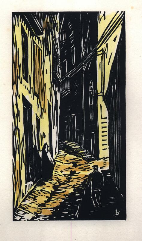 Josep Benseny és una figura clau en la represa cultural a la Lleida de postguerra. Artista polifacètic, en el camp del gravat destaca la seva sèrie sobre el Canyeret, un conjunt de linòleums on representa diferents racons d’aquest barri lleidatà. Benseny aprofita les línies pròpies de la tècnica del linòleum per acentuar la sensació de desolació i dramatisme dels carrerons estrets, en una edició il·luminada a mà pel propi artista que li atorga una categoria molt propera al còmic.