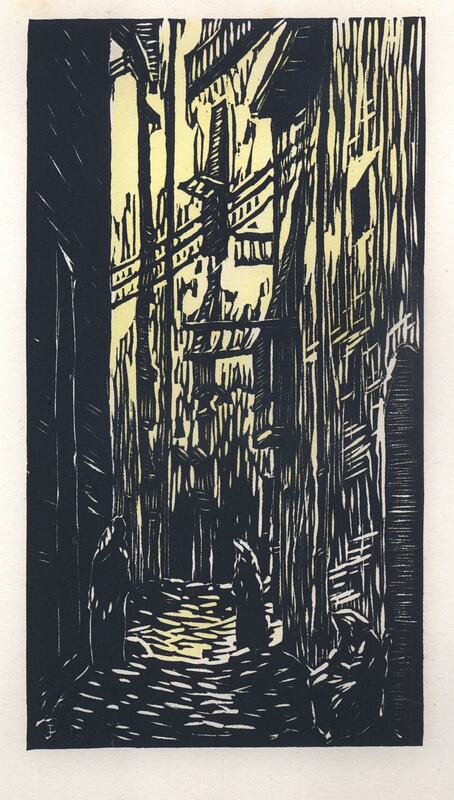 Josep Benseny és una figura clau en la represa cultural a la Lleida de postguerra. Artista polifacètic, en el camp del gravat destaca la seva sèrie sobre el Canyeret, un conjunt de linòleums on representa diferents racons d’aquest barri lleidatà. Benseny aprofita les línies pròpies de la tècnica del linòleum per acentuar la sensació de desolació i dramatisme dels carrerons estrets, en una edició il·luminada a mà pel propi artista que li atorga una categoria molt propera al còmic.