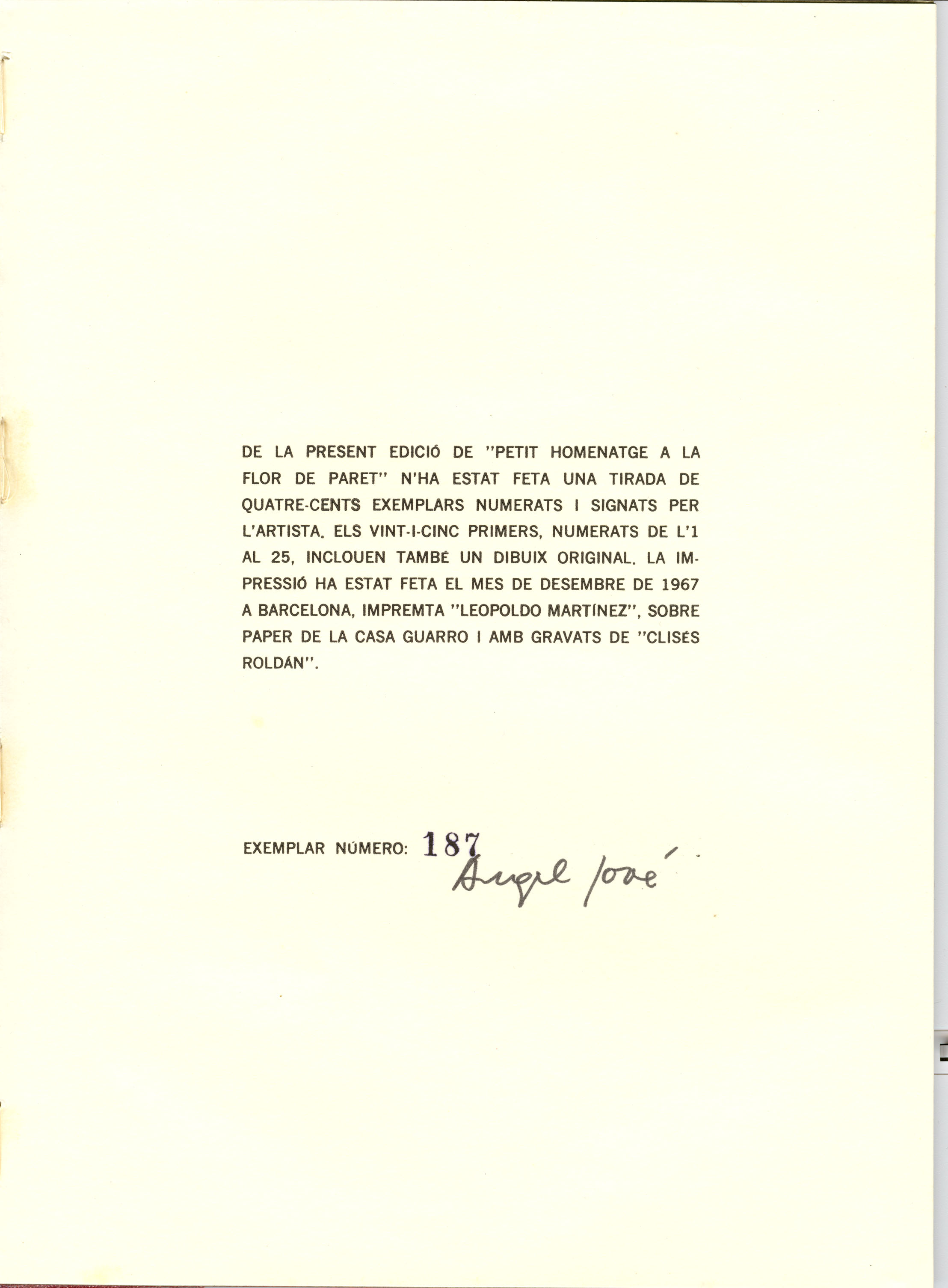 Superada l’etapa del Grup Cogul, Àngel Jové manté encara la seva obsessió per les parets i les flors, que ja siguin pintades o empaperades, decoren i donen vida a aquest univers. Petit homenatge a la flor de paret és el compendi final d’aquesta obsessió. Una sèrie que tanca la seva època informalista i inaugura el camí definitiu cap a l’art conceptual.