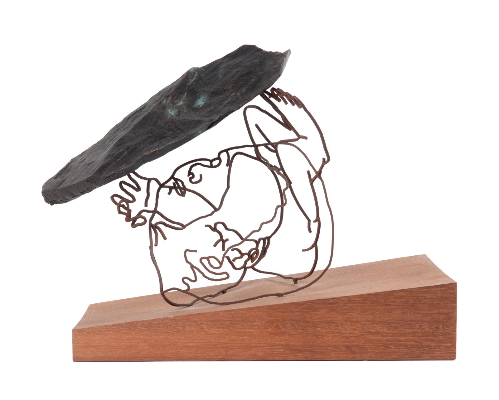 - escultura en ferro i bronze sobre base de fusta