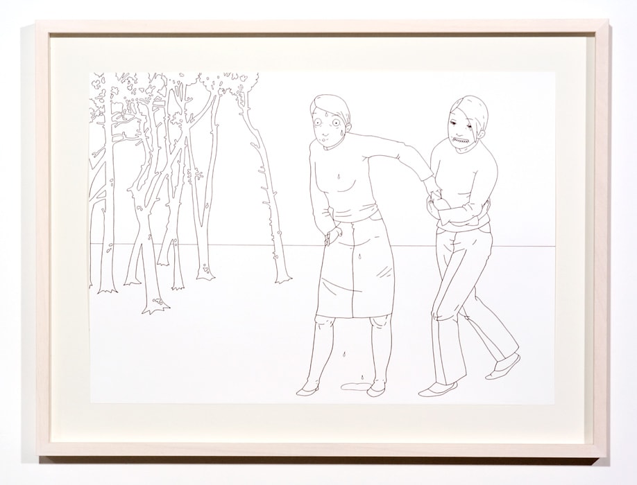 Abigail Lazkoz utilitza el dibuix per reflexionar sobre fets i situacions amb un marcat caràcter narratiu. L'acurada representació de la gestualitat i l'expressió dels personatges creen escenes gairebé teatrals, alguns cops properes a allò sinistre, que activen la nostra capacitat d'imaginar possibles causes del que està succeint. Conscient de la relació directa amb el llenguatge del còmic, l'artista reconeix influències de l'expressionisme, el surrealisme i d'altres tan diferents com els gravadors japonesos i mexicans, el manga o cineastes com Tim Burton.