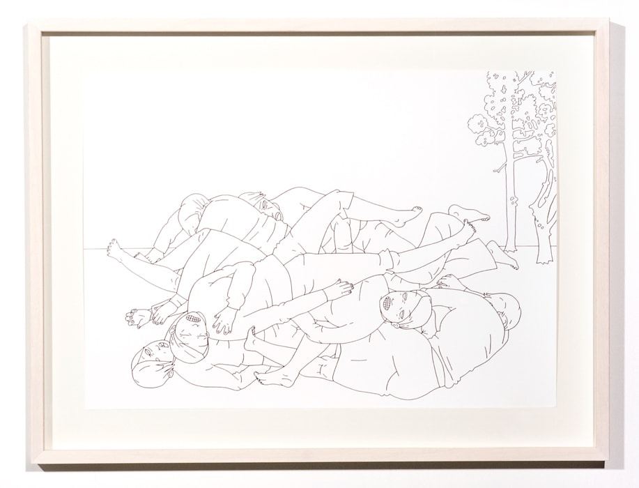 Abigail Lazkoz utilitza el dibuix per reflexionar sobre fets i situacions amb un marcat caràcter narratiu. L'acurada representació de la gestualitat i l'expressió dels personatges creen escenes gairebé teatrals, alguns cops properes a allò sinistre, que activen la nostra capacitat d'imaginar possibles causes del que està succeint. Conscient de la relació directa amb el llenguatge del còmic, l'artista reconeix influències de l'expressionisme, el surrealisme i d'altres tan diferents com els gravadors japonesos i mexicans, el manga o cineastes com Tim Burton.