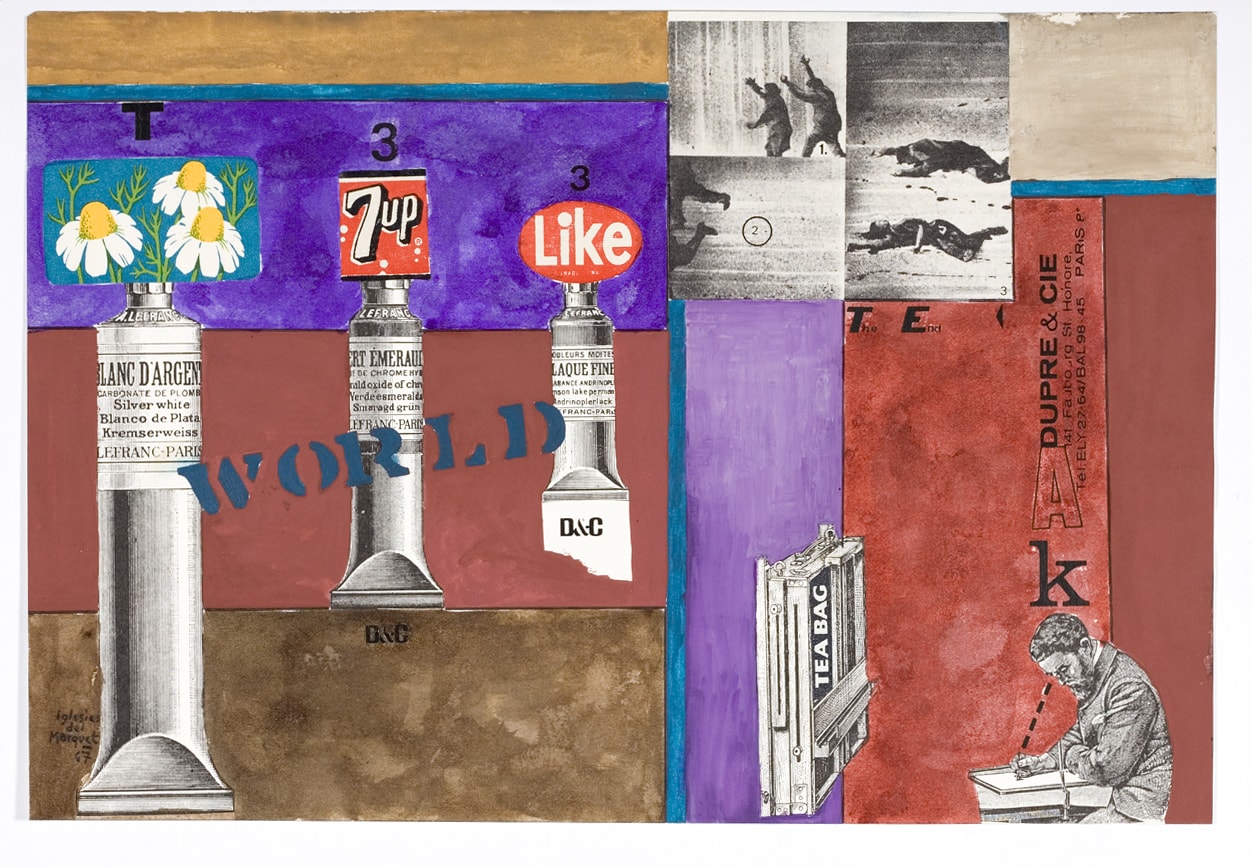 Periodista i crític d’art, Iglésias del Marquet es trasllada l’any 1961 a Glasgow. A la ciutat escocesa descobreix, entre d’altres, el Pop Art, moviment en el qual s’endinsarà a partir del 1963 utilitzant la tècnica del collage. Mostrant elements de la seva realitat quotidiana, els collages d’Iglésias del Marquet es converteixen en una crònica de la societat que l’envolta, completament diferent de la que ell coneixia. Són obres a la frontera entre la literatura i la pintura, i a un pas de la futura poesia visual.