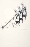 Comunidades Un espai rectangular ha estat engabiat mitjançant l'organització de diferents tanques metàl·liques. L'espectador no hi té accés. A l'interior del mateix i directament al terra es projecta una imatge video en blanc i negre i sense so.