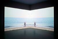 Utopía: ida y vuelta Doble projecció DVD: imatge en un mirall d'una dona andrògena que camina davant del mar. El seu recorregut està acotat i es repeteix endavant i endarrere indefinidament. S'escolta el so ralentitzat d'una onada. La duració del so és exactament igual que la duració del recorregut del personatge.