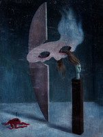 Tubercul incúbic tot esperant l'hora seca Lamolla és qui més be representa el concepte artístic preconitzat pel surrealisme a Lleida, inspirat per la personalitat i les reflexions teòriques de Josep Viola. Ell mateix reconeixeria el caràcter literari de la seva pintura i com aquesta respon a la necessitat d’expressar els estats interiors del pensament a través de l’inconscient. La via escollida en el camp pictòric no és la dels simple automatisme gràfic que proposa la ortodòxia surrealista, sobretot la més vinculada a la poesia, sinó la de fixar imatges arbitràriament configurades durant el somni o la vetlla, plasmades íntegrament de manera objectiva i crua. La seva ordenació i disposició ha de respondre als dictats de la realitat interior del subjecte.