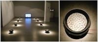 Pulsar, geometries del kosmos "Pulsar, geometries del Kosmos" és una obra que aborda la relació entre l’ésser humà i l’observació de l’univers en relació amb els grans fenòmens físics que hi succeeixen. Aquest univers que s’expandeix és també un univers que sona. Si bé durant anys va ser considerat un lloc silenciós a causa de l’impediment per a la transmissió de les ones sonores a causa del buit, actualment la dimensió acústica de l’univers és un fet i una conjectura. Encara més, hi ha casos particulars en què el so treu protagonisme a la imatge a l’hora de conèixer empíricament alguns dels elements que hi són presents. Els forats negres són un exemple paradigmàtic, ja que només poden ser percebuts gràcies a un radiotelescopi. L’obra es formalitza com una instal·lació sonora multicanal de 10 minuts de duració que transforma les ones electromagnètiques en ones sonores. Aquestes són reproduïdes a l’interior de 8 altaveus modificats, que contenen 1 cm. d’aigua destil·lada en el seu interior i fan visibles diferents patrons geomètrics sobre la seva superfície. D’aquesta manera es fa visible un procés totalment abstracte com és el so d’uns estels, que no són visibles per l’ull humà des de la terra, que són a milers d’anys llum. L’obra sonora es llença des de l’arxiu de vídeo que acompanya la peça. El que és visible en el vídeo és allò que es farà visible en l’interior dels altaveus.