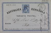 República Española Targeta Postal Targeta postal enviada per Juan Gosé als Germans Sert i Solà el 26 de maig de 1875. Tampó en la part posterior de Juan Gosé. Lérida