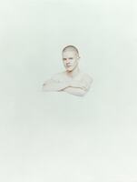 Aquesta fotografia pertany a la sèrie Retrats (1993), nou bustos masculins i femenins presentats a Lleida en el marc de l’exposició “Missatges xifrats” (1994), que emfatitzen la ingravidesa del nu a partir de la blancor de l’anatomia i el gest translúcid dels cossos representats, i on destaca per sobre de tot l’entorn humà de l’artista —els rostres pertanyen a persones joves, a amics d’edat propera a la seva, — i el fons blanc, que en sèries posteriors com ara Què mires? (1994) i Retrats (1995) es transformarà en negre.