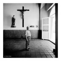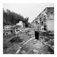 Aseador sepulturero Gumersindo Castellanos. Lérida, Colombia Fruit dels programes de cooperació de l’Ajuntament de Lleida amb el municipi colombià de Lérida (Tolima, Colòmbia), l’any 1997 el fotògraf Toni Prim viatja, juntament amb autoritats locals, empresaris i periodistes, a aquesta petita comunitat colombiana per inaugurar la Casa de la Cultura. D’aquella estada sorgeix un reportatge fotogràfic, a mig camí entre el costumisme i la crònica gràfica, que Toni Prim publica en el llibre Lérida. La germana, amb textos de Joan Cal, Josep Ramón Correal i el mateix Toni Prim (Ajuntament de Lleida, 1999). Gumersindo Castellanos és un “aseador sepulturero”, més que un enterramorts. Ell s’encarrega, efectivament, d’excavar i preparar les tombes, nínxols i panteons, però també cuida dels difunts i assisteix a les inhumacions i exhumacions. Gumersindo representa el respecte per la cultura de la mort en una comunitat rural com Lérida, és l’enllaç entre els món dels morts i els vius. I fa la seva feina amb el màxim respecte i compostura. Francesc Gabarrell -