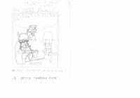 Bill Clinton es ¡Pablo Marmol! Esbós de la carpeta anomenada "Chistes ABC Gente y aparte" sense un títol o personatges específics, on apareixen Pablo Mármol amb una espècie de barret amb banyes assegut al sofà i Betty al seu darrera amb una làmpara i un os.
