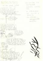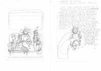 Nave española el cohete Ariadna Esbós de la carpeta anomenada "Chistes ABC Gente y aparte" sense un títol o personatges específics, on apareixen uns nens jugant amb un joystick que sembla tripular un coet que volen estavellar al col·legi per no anar a classe. A la part inferior hi ha un esbós d'un personatge adult amb una planta d'un peu.