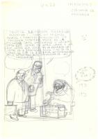 Impuestos Inspectores de Hacienda Esbós de la carpeta anomenada "Chistes ABC Gente y aparte" sense un títol o personatges específics, on apareix una dona pobra venent pipes al carrer i sent interrogada per dos inspectors d'hisenda.