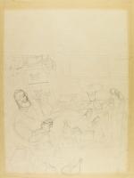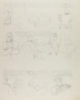 Esbossos per a Perro Nick (El Víbora) Esbossos per a Perro Nick preparatoris a la historieta publicada al número 76 d'El Víbora amb un dibuix del protagonista assegut al despatx i un altre que està d'esquena mirant per la finestra, mentre un altre personatge està al sofà. Aquest darrer dibuix inclou 2 bafarades de text, entre altres notes.