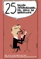 Cartell 25è Saló internacional del còmic de Barcelona Cartell per al 25è Saló internacional del còmic de Barcelona, realitzat del 19 al 22 d'abril del 2007 a la Fira de Barcelona Montjuïc Palau 8. Apareix un dibuixant assegut dibuixant amb tinta xinesa en una taula de dibuix inclinada i una bafarada a la part superior amb la informació de l'esdeveniment.