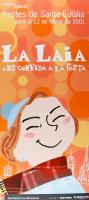 Cartell Festes de Santa Eulàlia Cartell per a les Festes de Santa Eulàlia amb el lema "La Laia ens convida a la festa", realitzades del 4 al 12 de febrer de 2001. Apareix el personatge de la nena Laia somrient i ulls tancats, amb bufanda, barret d'hivern i un fons de bombolles de colors i vistes de la catedral de Barcelona, entre altres edificis.